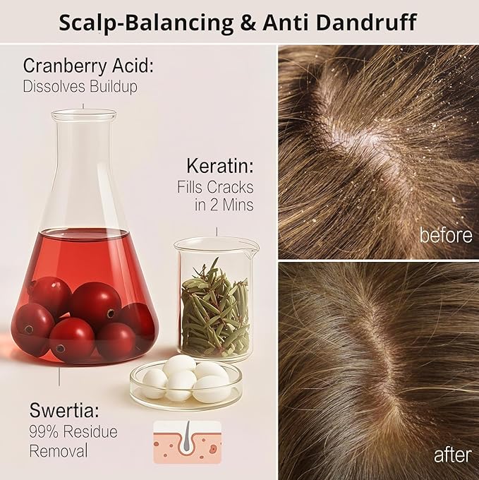 - 【Scalp-Balancing & Dandruff Support】This anti dandruff shampoo features Swertia Japonica Extract to soothe the scalp environment, while Cranberry Extract combats residue. Use as a standalone keratin shampoo or pair with our hair conditioner for a complete clarifying dandruff shampoo and conditioner solution. Gentle enough for regular routine shampoo use in hair care for women.