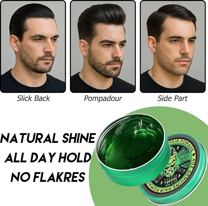 Water-Based Pomade, Hair Pomade for Men, Medium Hold Shine Hair Gel for Men | Strong Hold | Non-Greasy | for Pompadour Side Part Slick Back - 5.3oz Apple Scent