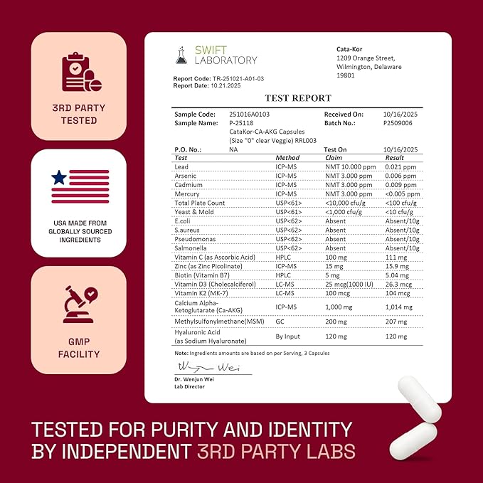 - CATA-KOR BEAUTY COMPLEX formulated with Calcium AKG, MSM, Hyaluronic Acid, Biotin, Zinc supplements to support skin elasticity, promote shiny hair & strong nails.*