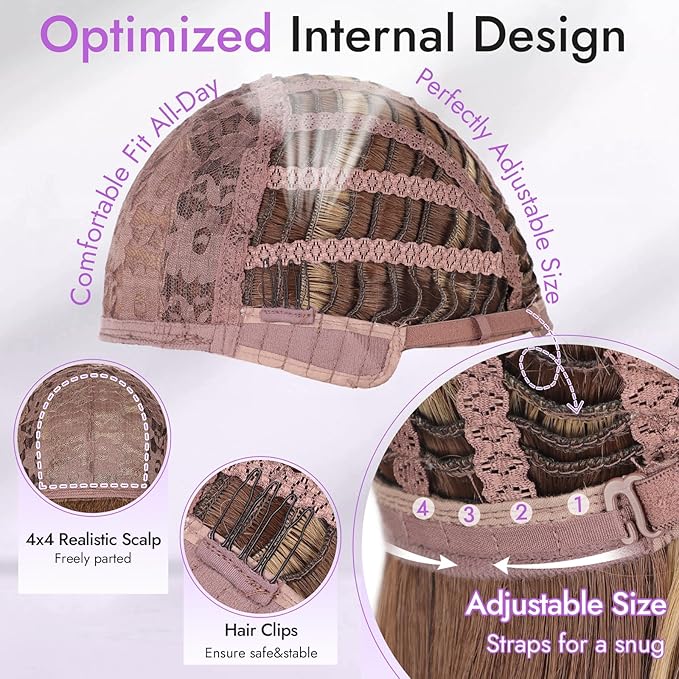 - 【Realistic Scalp Design】:The 4x4 inch simulated scalp enables flexible parting—whether you prefer a middle or side part, this wig allows for endless styling possibilities. The natural hairline enhances realism.