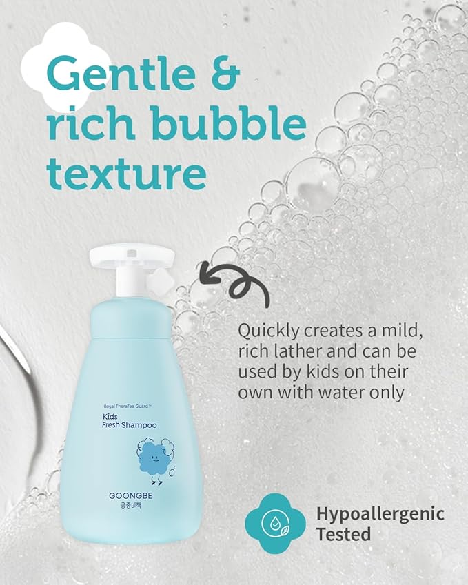 - DEEP CLEANSING WITH GENTLE INGREDIENTS: GOONGBE Kids' Fresh Shampoo offers pure freshness for sensitive scalps. This silicone-free, low pH formula tackles oily conditions while preserving delicate skin balance without rough ingredients.